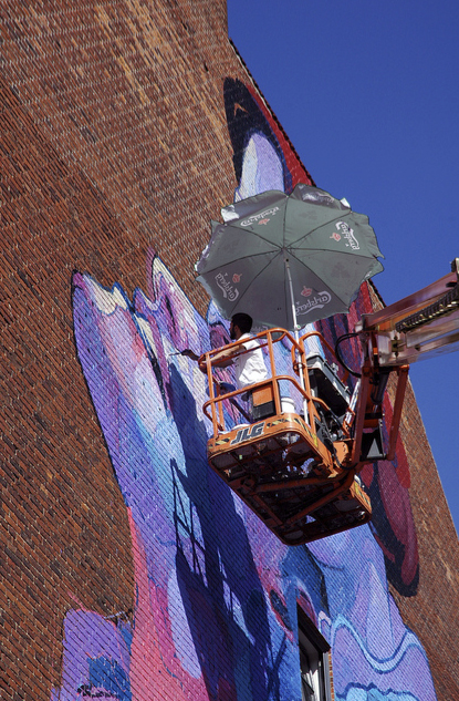 Fijáos en la siguiente foto como el mural de Aryz está junto a un famoso trabajo que ROA hizo hace unos años para el mismo festival.